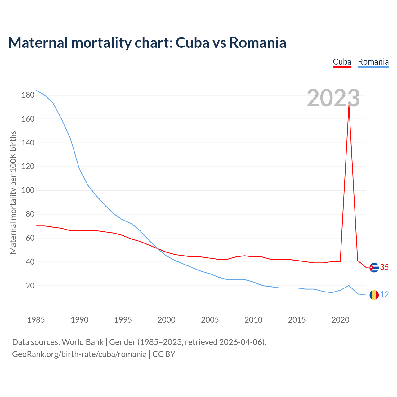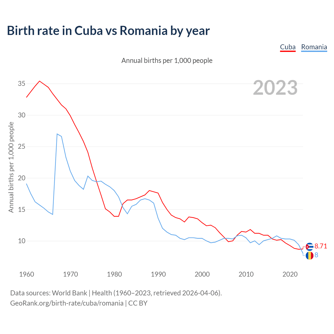 GeoRank.org/birth-rate/cuba/romania | CC BY