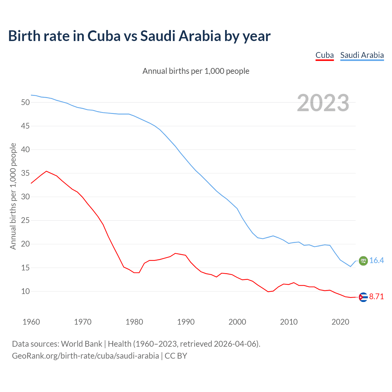 GeoRank.org/birth-rate/cuba/saudi-arabia | CC BY