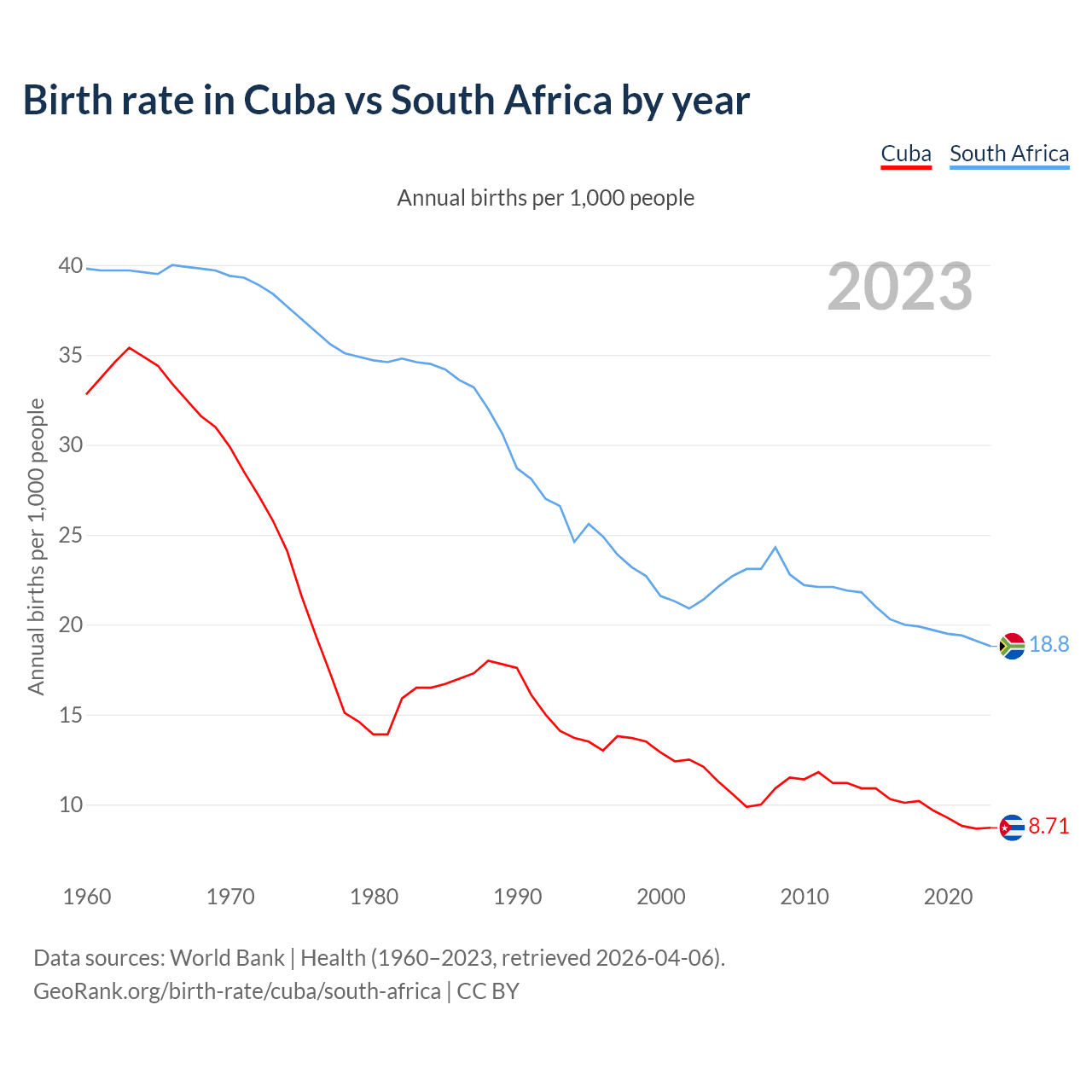 GeoRank.org/birth-rate/cuba/south-africa | CC BY