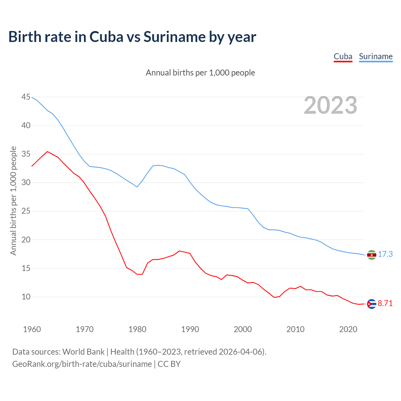 GeoRank.org/birth-rate/cuba/suriname | CC BY