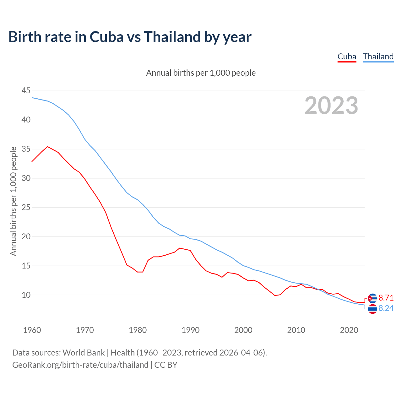 GeoRank.org/birth-rate/cuba/thailand | CC BY