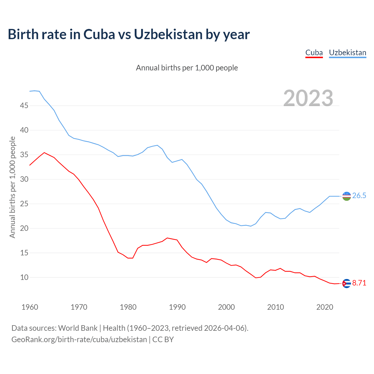 GeoRank.org/birth-rate/cuba/uzbekistan | CC BY