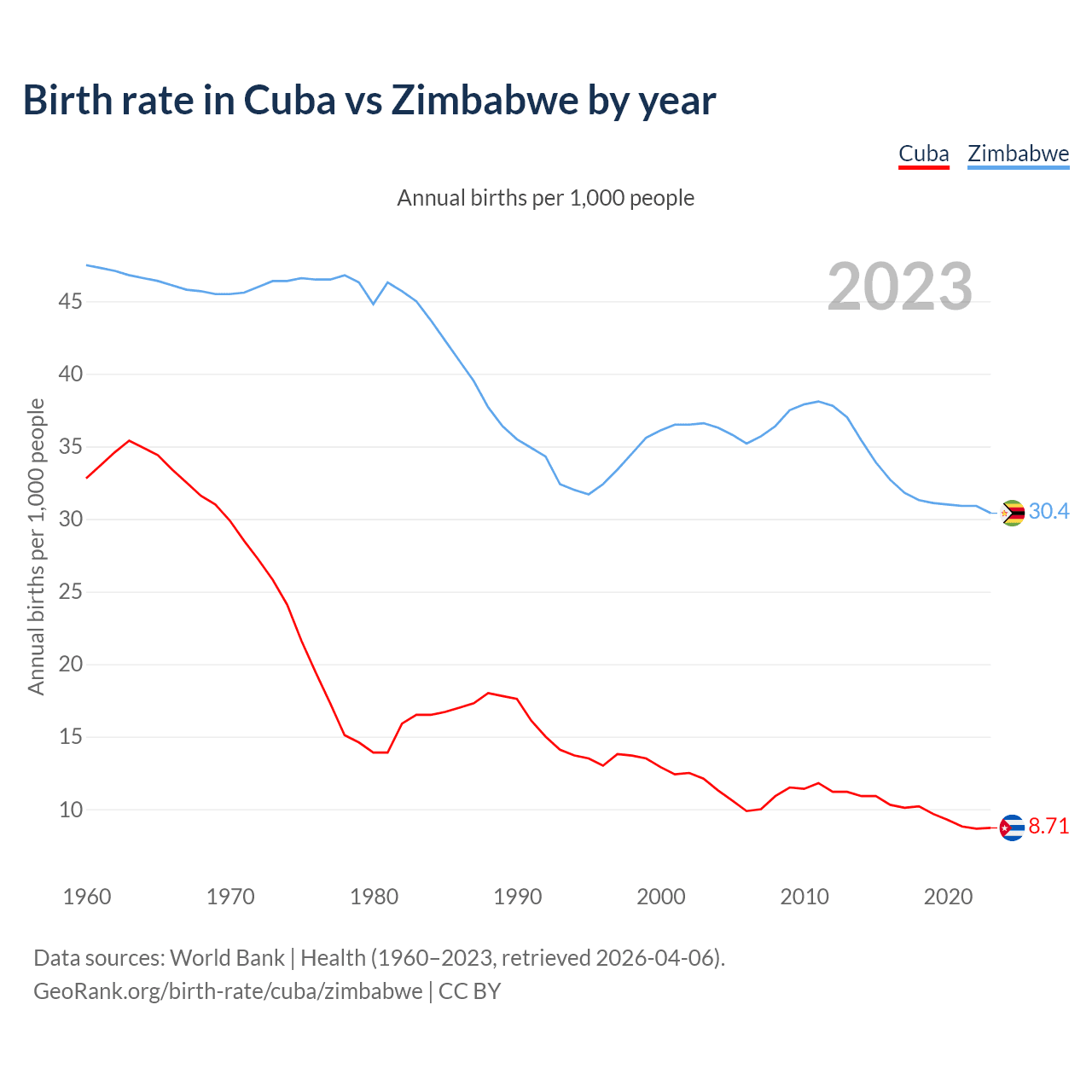 GeoRank.org/birth-rate/cuba/zimbabwe | CC BY