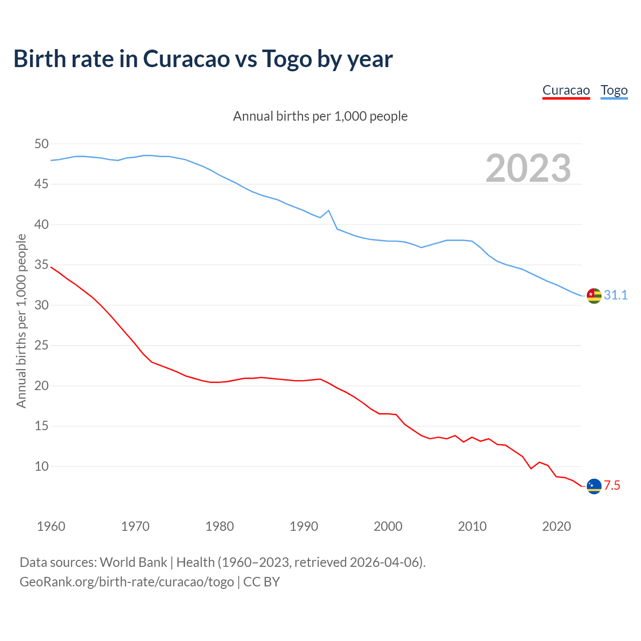 GeoRank.org/birth-rate/curacao/togo | CC BY