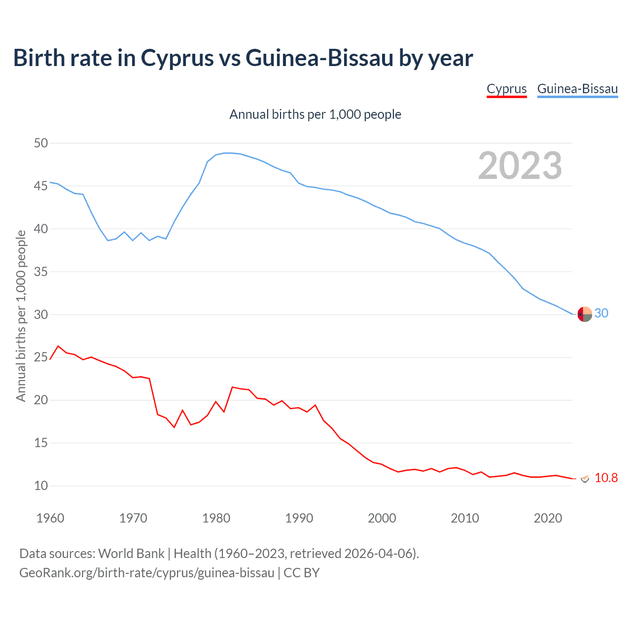 GeoRank.org/birth-rate/cyprus/guinea-bissau | CC BY