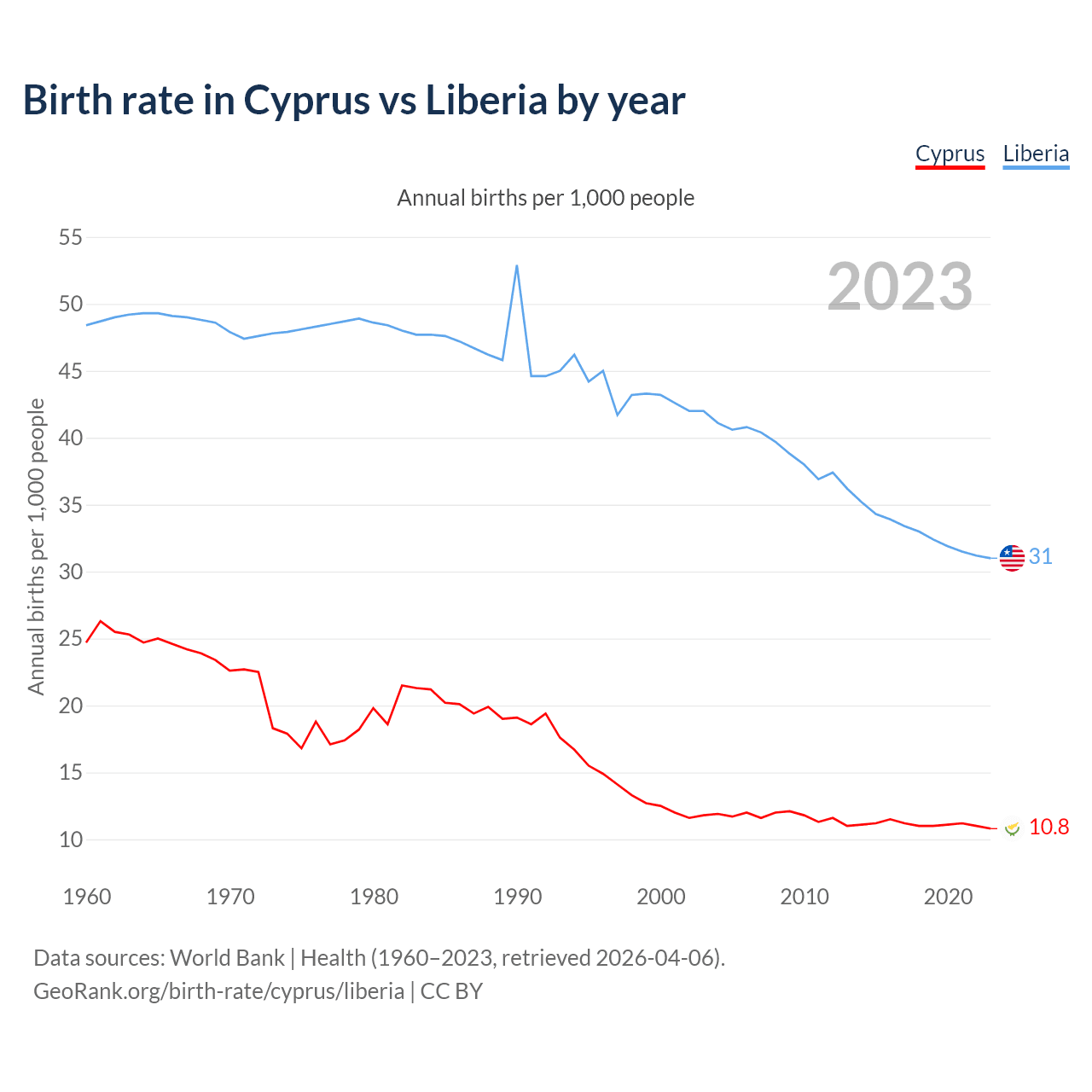 GeoRank.org/birth-rate/cyprus/liberia | CC BY