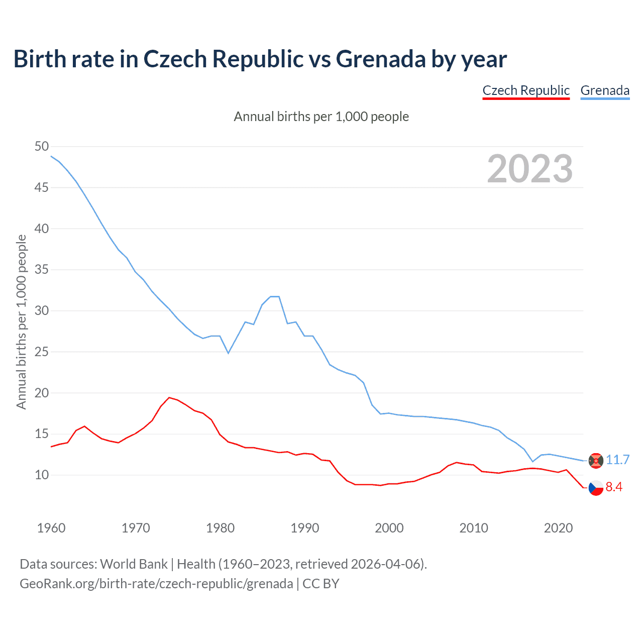 GeoRank.org/birth-rate/czech-republic/grenada | CC BY