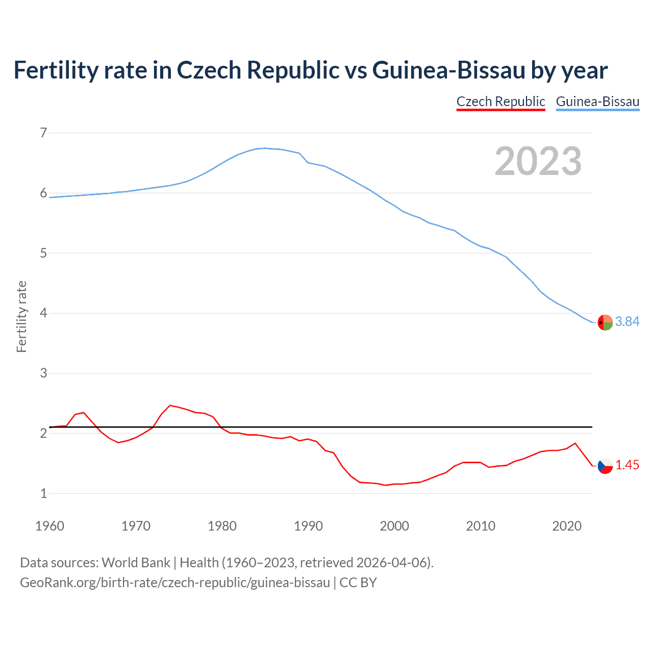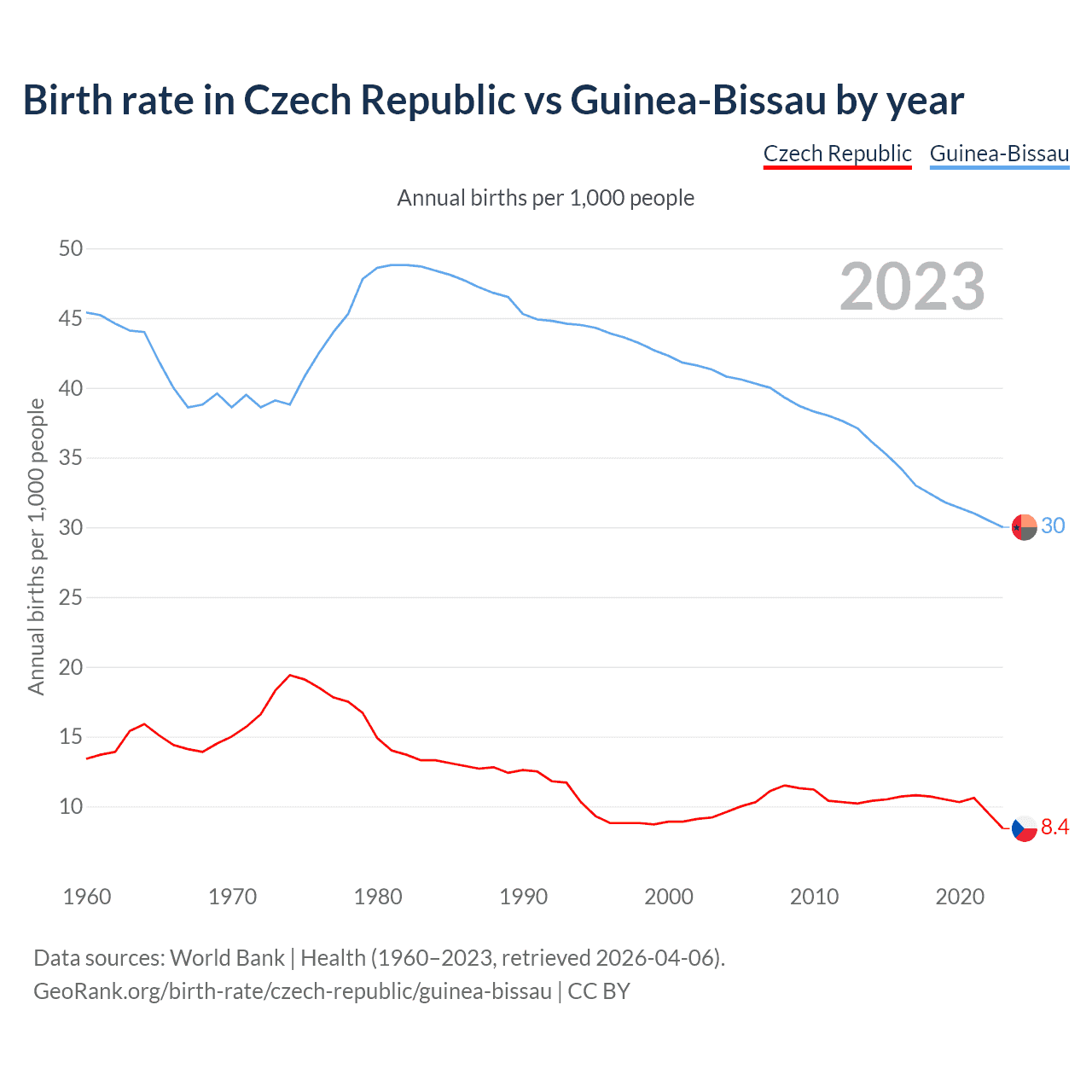 GeoRank.org/birth-rate/czech-republic/guinea-bissau | CC BY