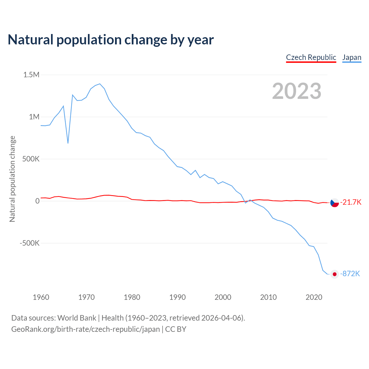 Check the Czech Republic vs Japan population clock for a dynamic visualization of the changing population.