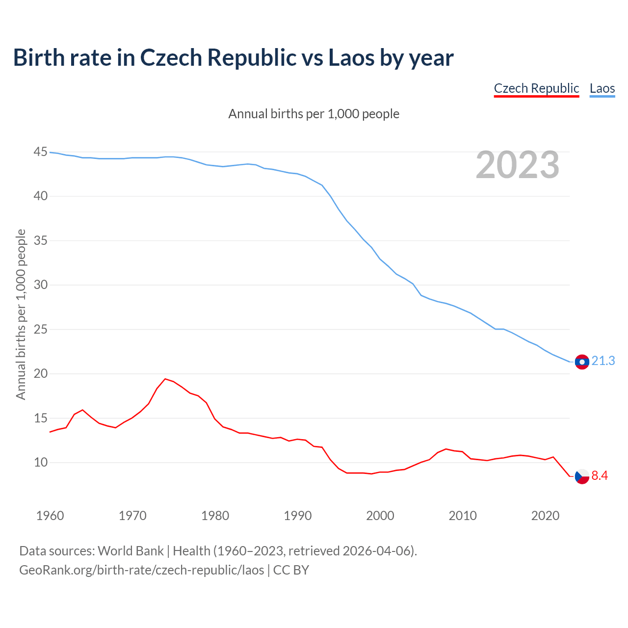 GeoRank.org/birth-rate/czech-republic/laos | CC BY