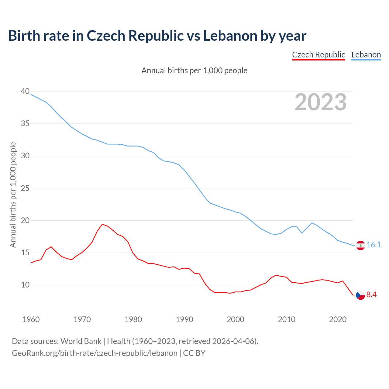 GeoRank.org/birth-rate/czech-republic/lebanon | CC BY