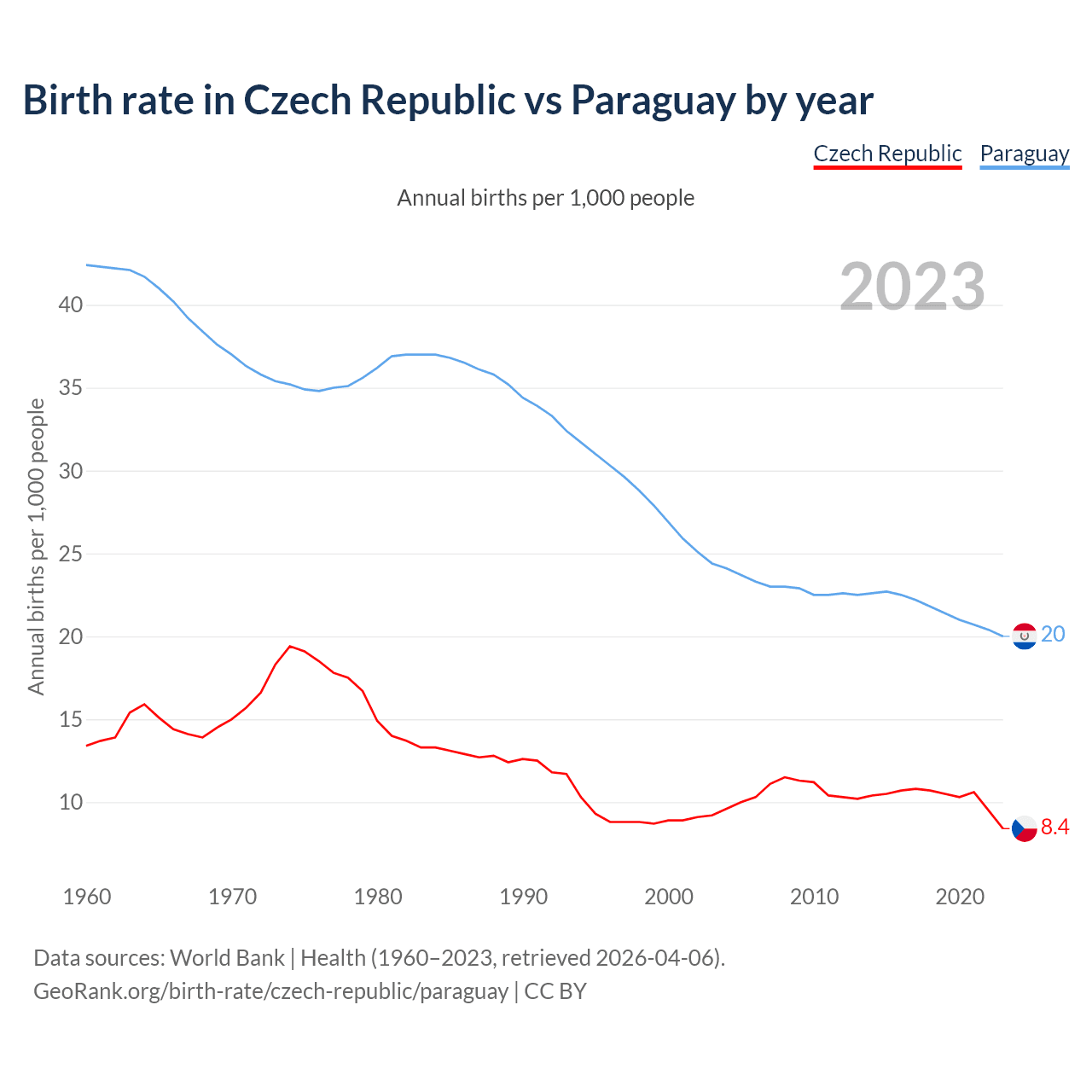 GeoRank.org/birth-rate/czech-republic/paraguay | CC BY