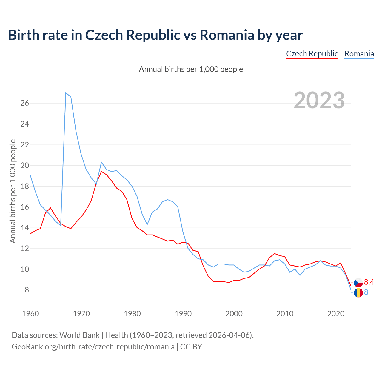 GeoRank.org/birth-rate/czech-republic/romania | CC BY