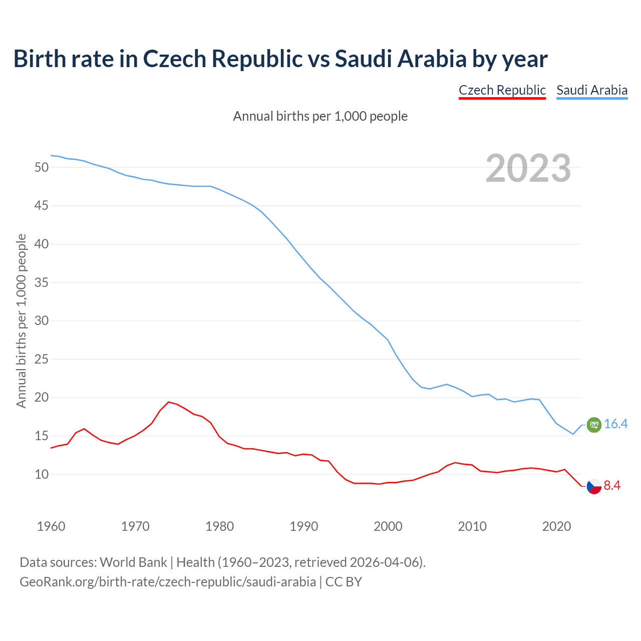 GeoRank.org/birth-rate/czech-republic/saudi-arabia | CC BY