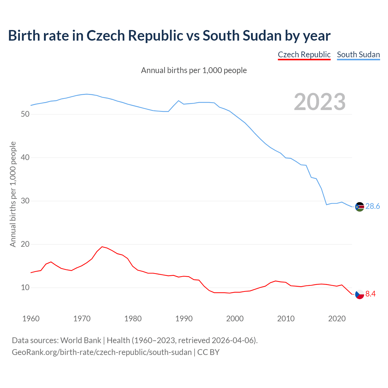 GeoRank.org/birth-rate/czech-republic/south-sudan | CC BY
