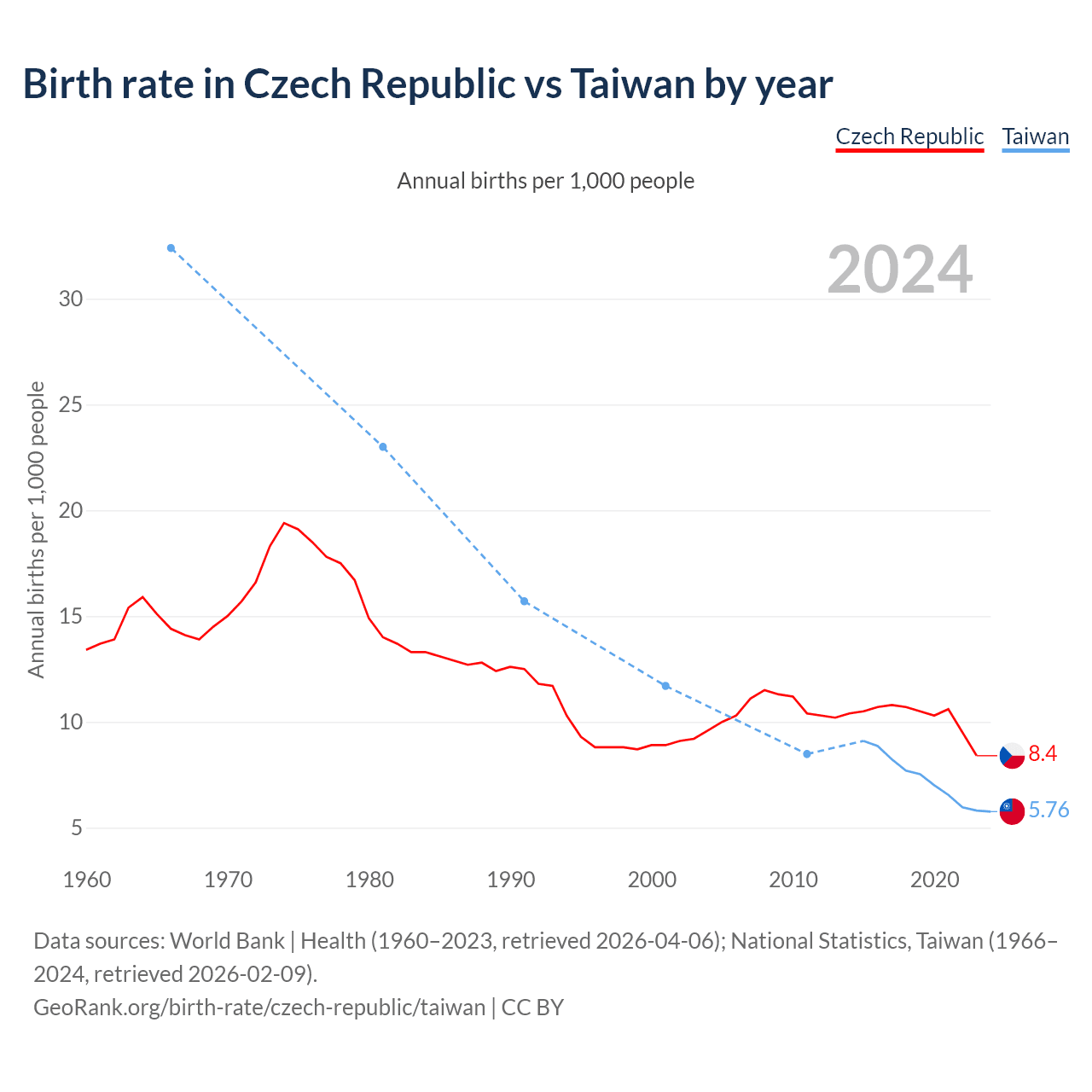 GeoRank.org/birth-rate/czech-republic/taiwan | CC BY