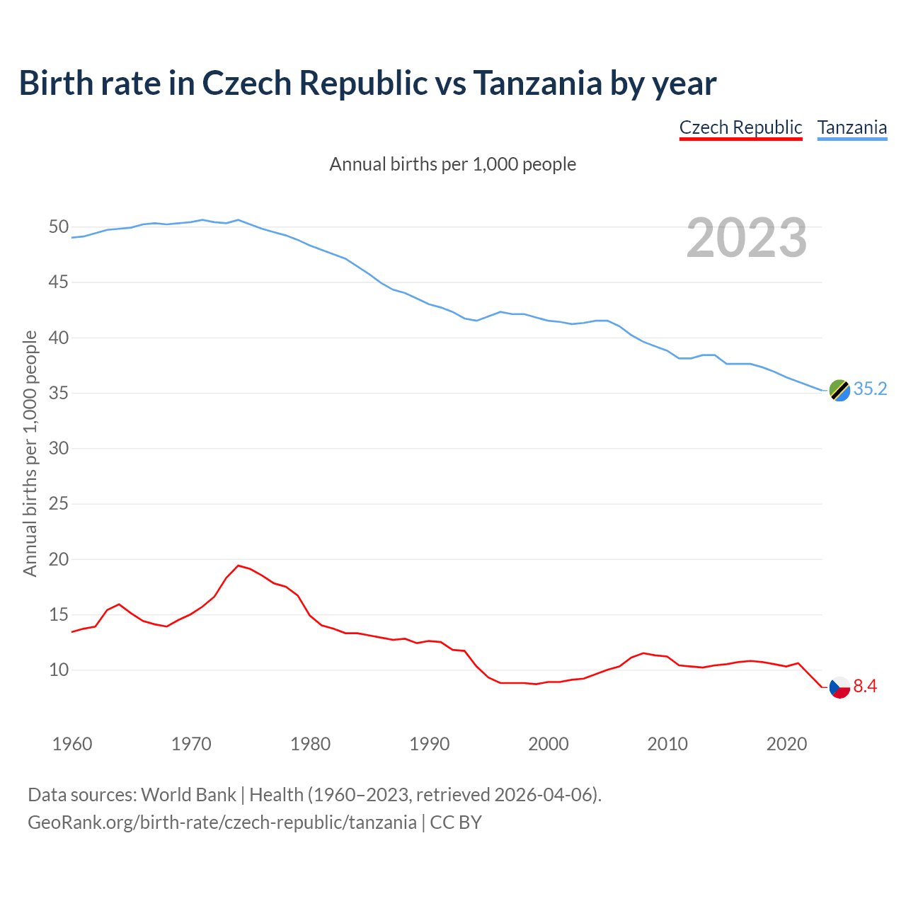 GeoRank.org/birth-rate/czech-republic/tanzania | CC BY