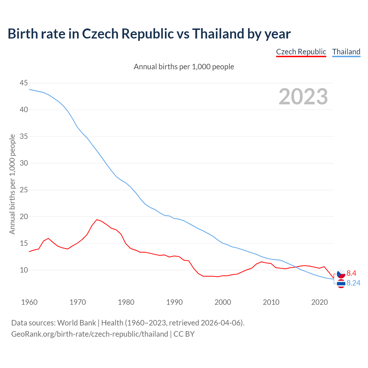 GeoRank.org/birth-rate/czech-republic/thailand | CC BY