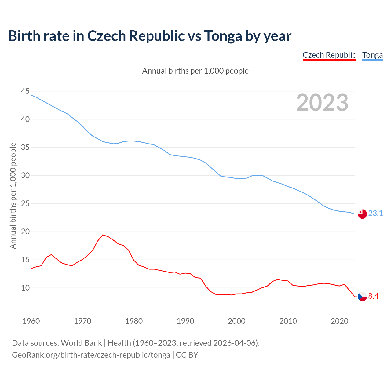 GeoRank.org/birth-rate/czech-republic/tonga | CC BY