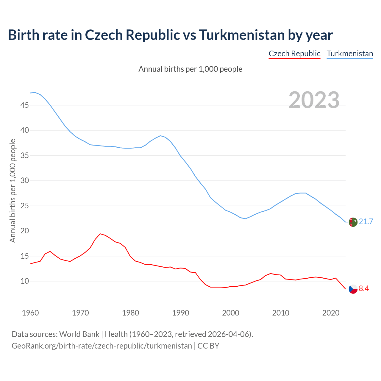 GeoRank.org/birth-rate/czech-republic/turkmenistan | CC BY