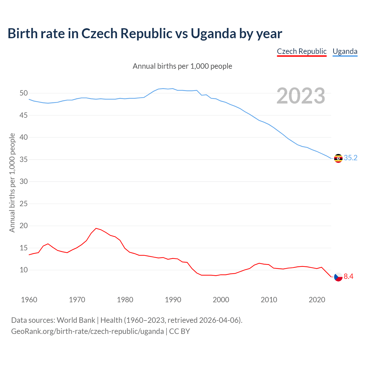 GeoRank.org/birth-rate/czech-republic/uganda | CC BY