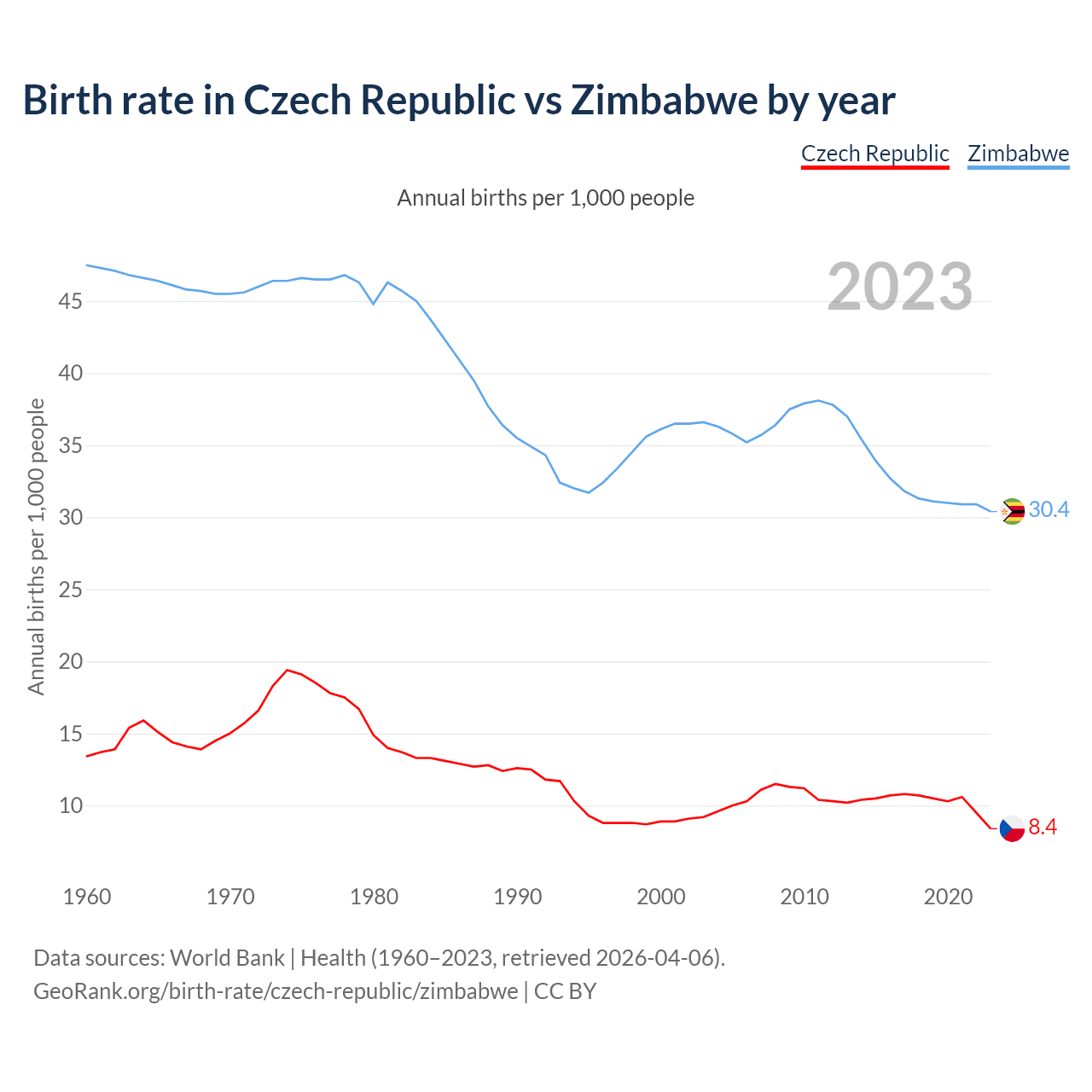GeoRank.org/birth-rate/czech-republic/zimbabwe | CC BY