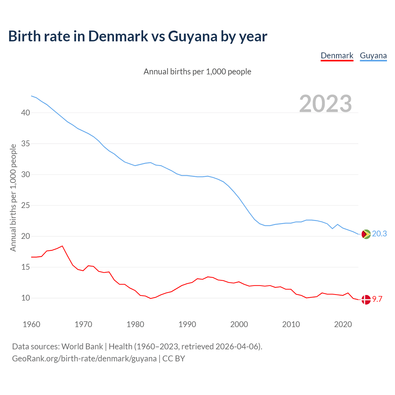 GeoRank.org/birth-rate/denmark/guyana | CC BY