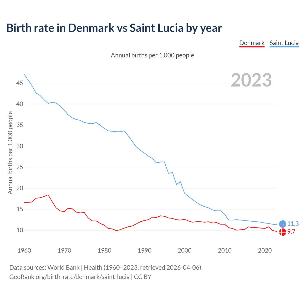 GeoRank.org/birth-rate/denmark/saint-lucia | CC BY