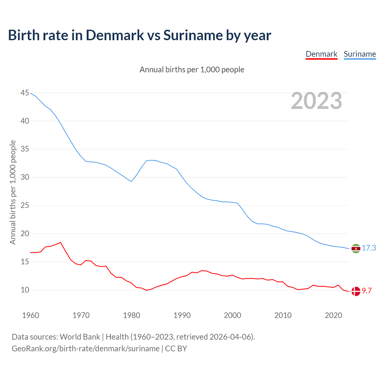 GeoRank.org/birth-rate/denmark/suriname | CC BY
