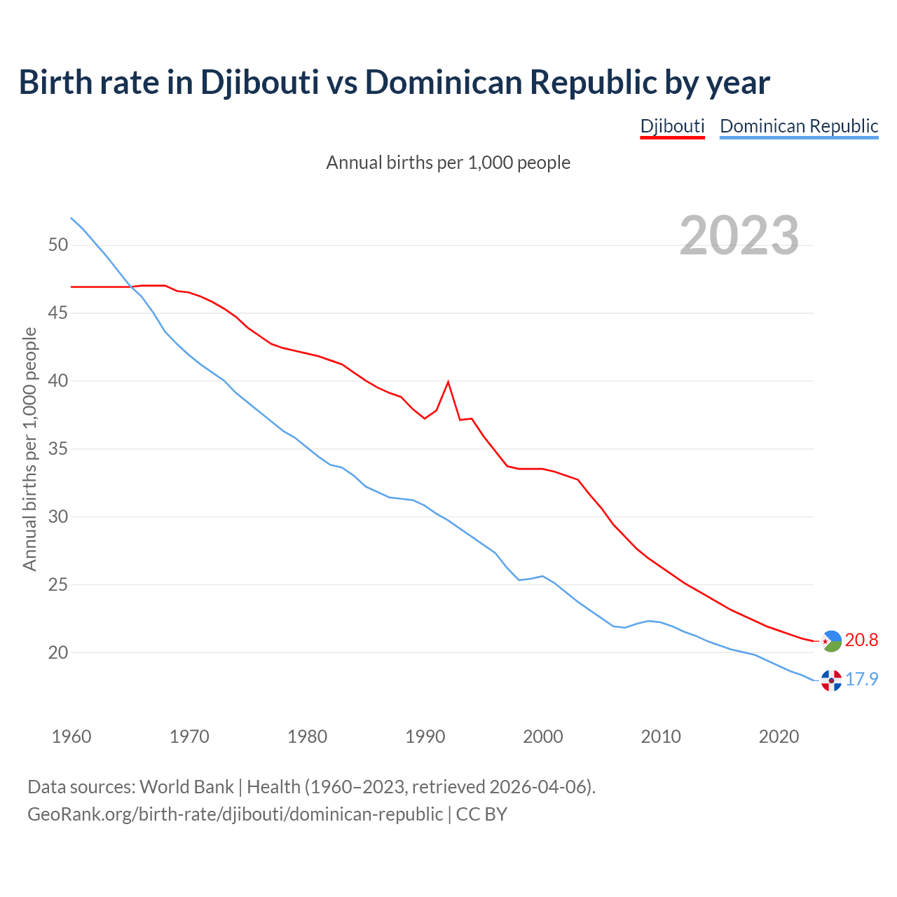 GeoRank.org/birth-rate/djibouti/dominican-republic | CC BY