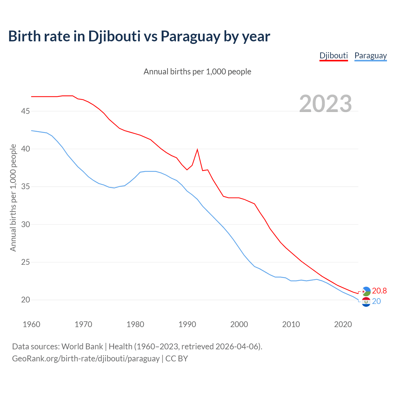 GeoRank.org/birth-rate/djibouti/paraguay | CC BY