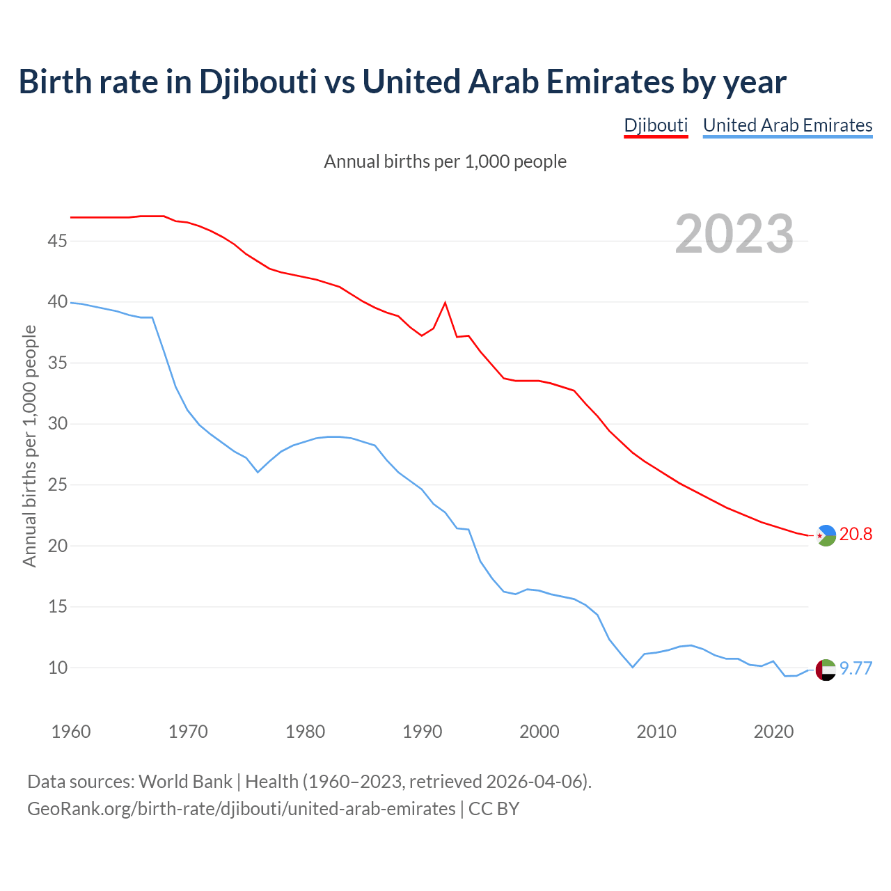GeoRank.org/birth-rate/djibouti/united-arab-emirates | CC BY