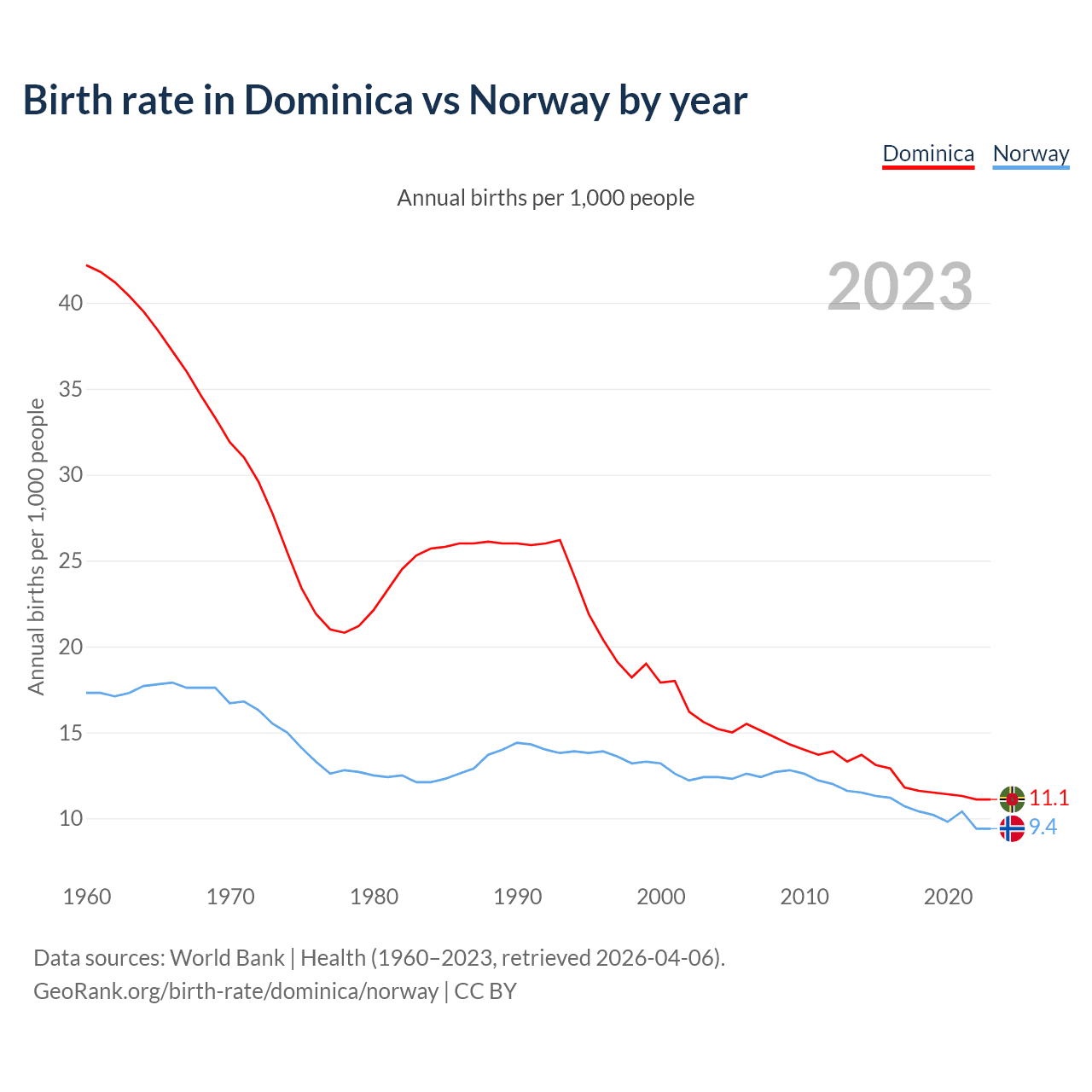 GeoRank.org/birth-rate/dominica/norway | CC BY