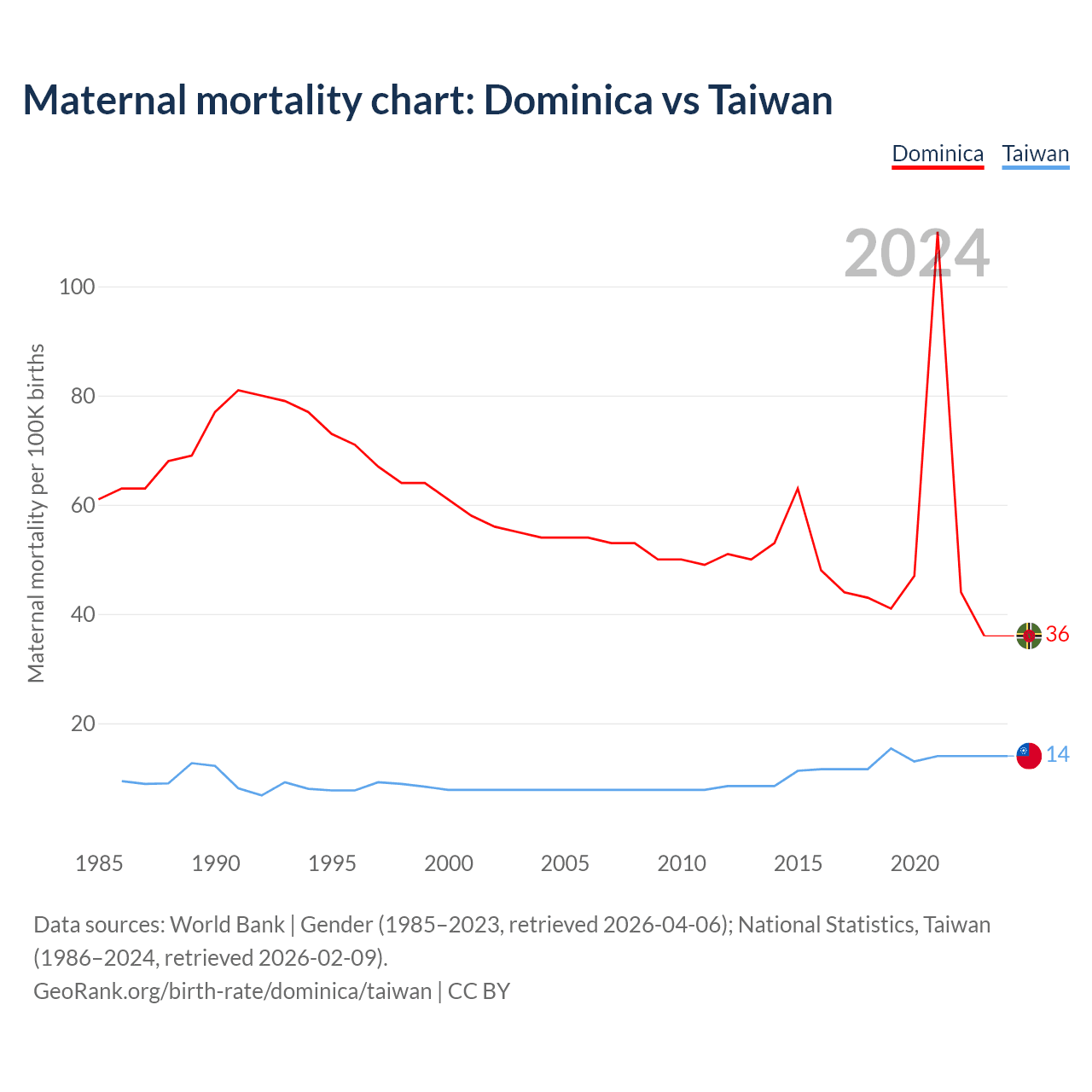 Maternal mortality chart: Dominica vs Taiwan