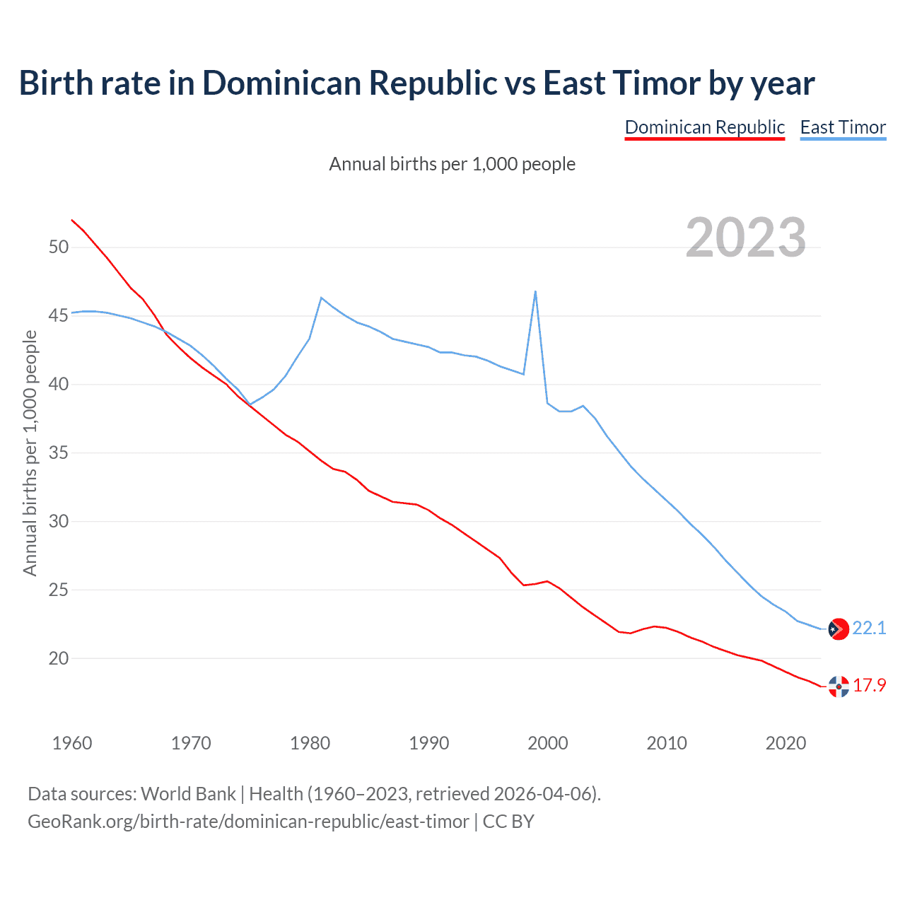 GeoRank.org/birth-rate/dominican-republic/east-timor | CC BY