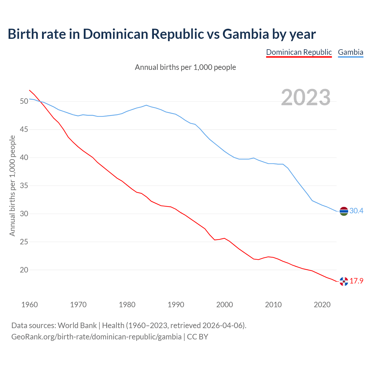 GeoRank.org/birth-rate/dominican-republic/gambia | CC BY