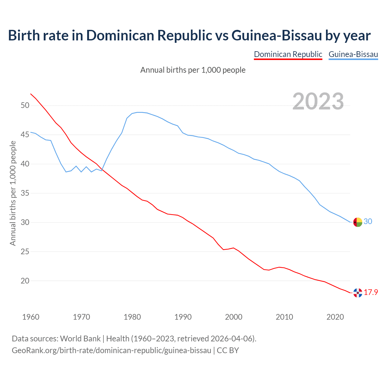 GeoRank.org/birth-rate/dominican-republic/guinea-bissau | CC BY