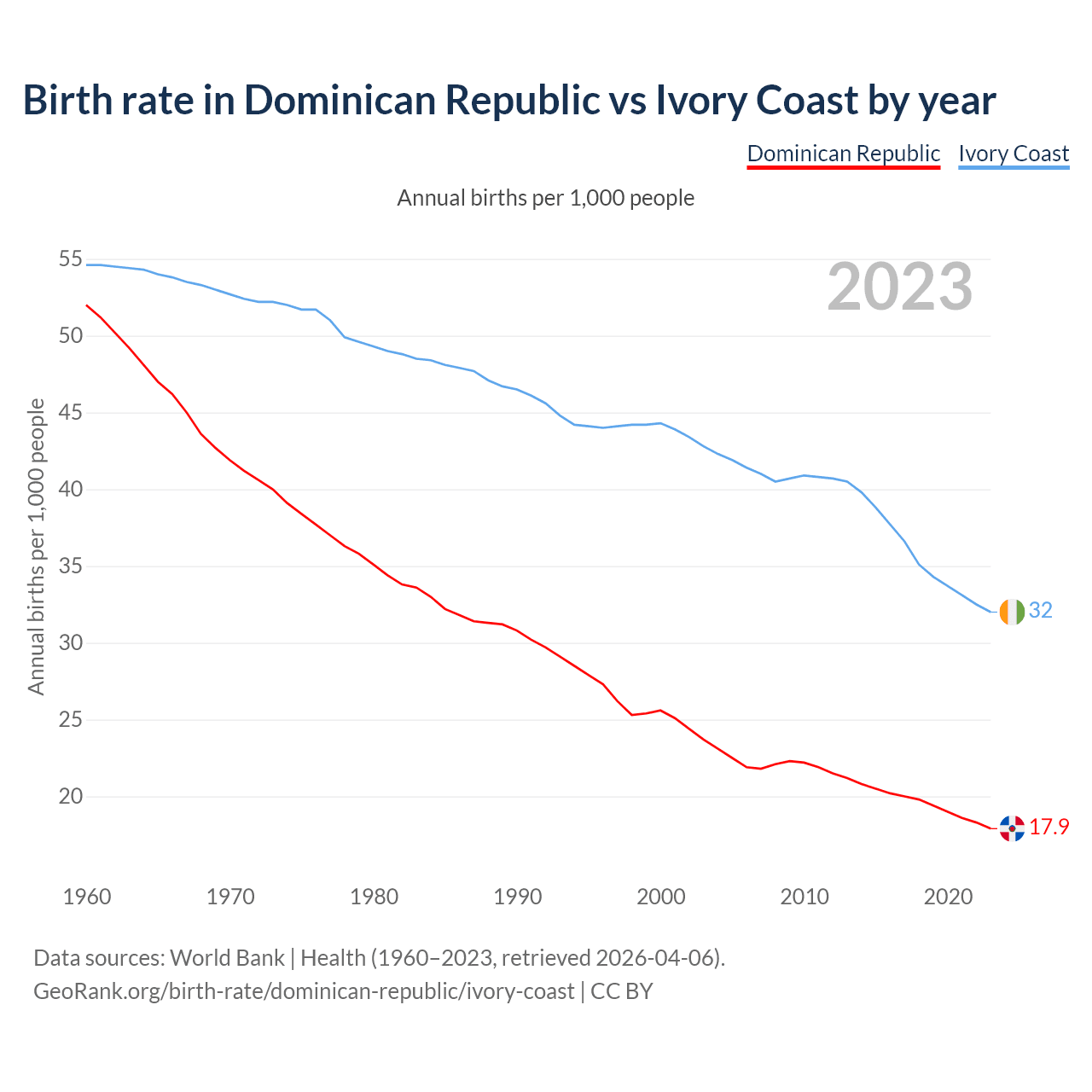 GeoRank.org/birth-rate/dominican-republic/ivory-coast | CC BY