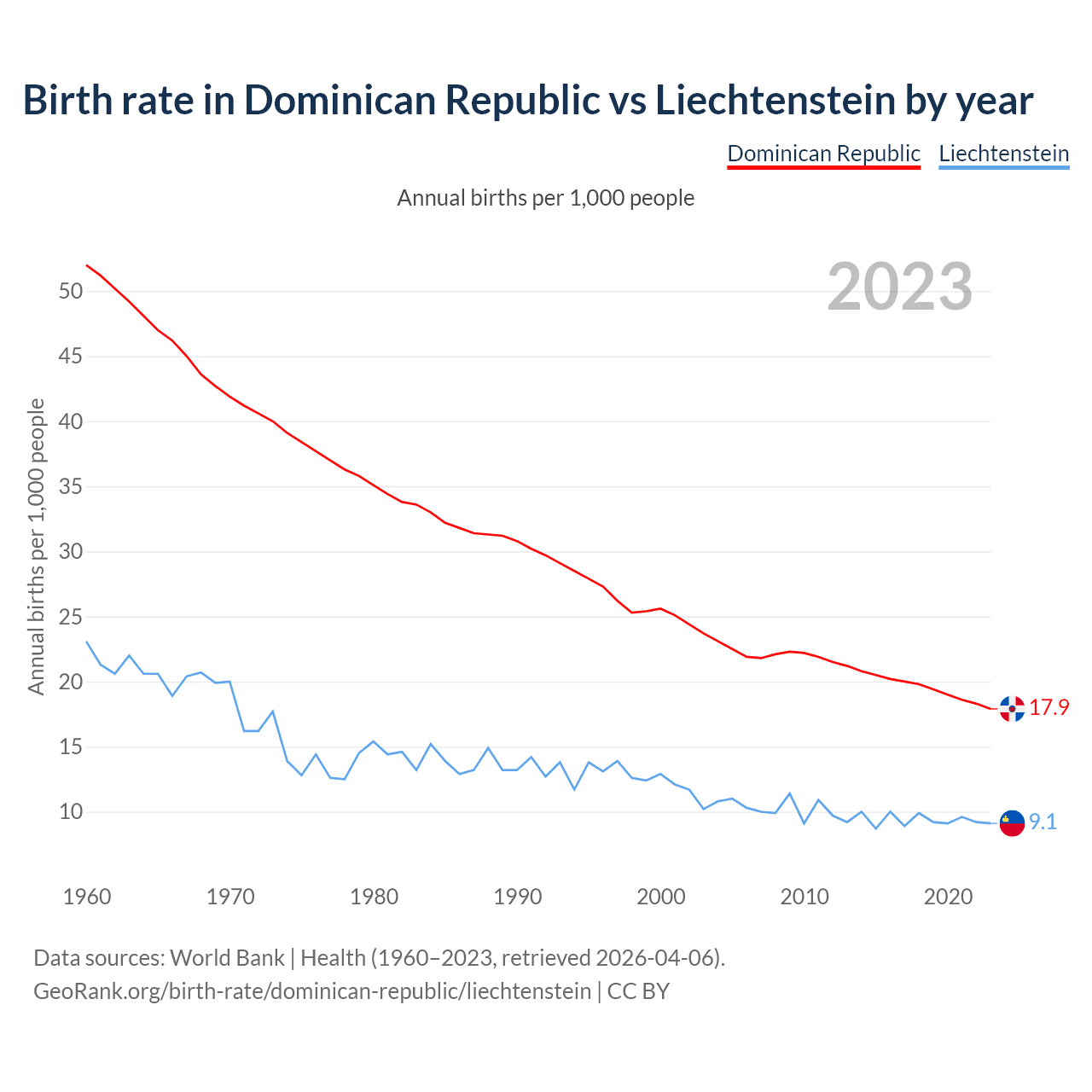 GeoRank.org/birth-rate/dominican-republic/liechtenstein | CC BY