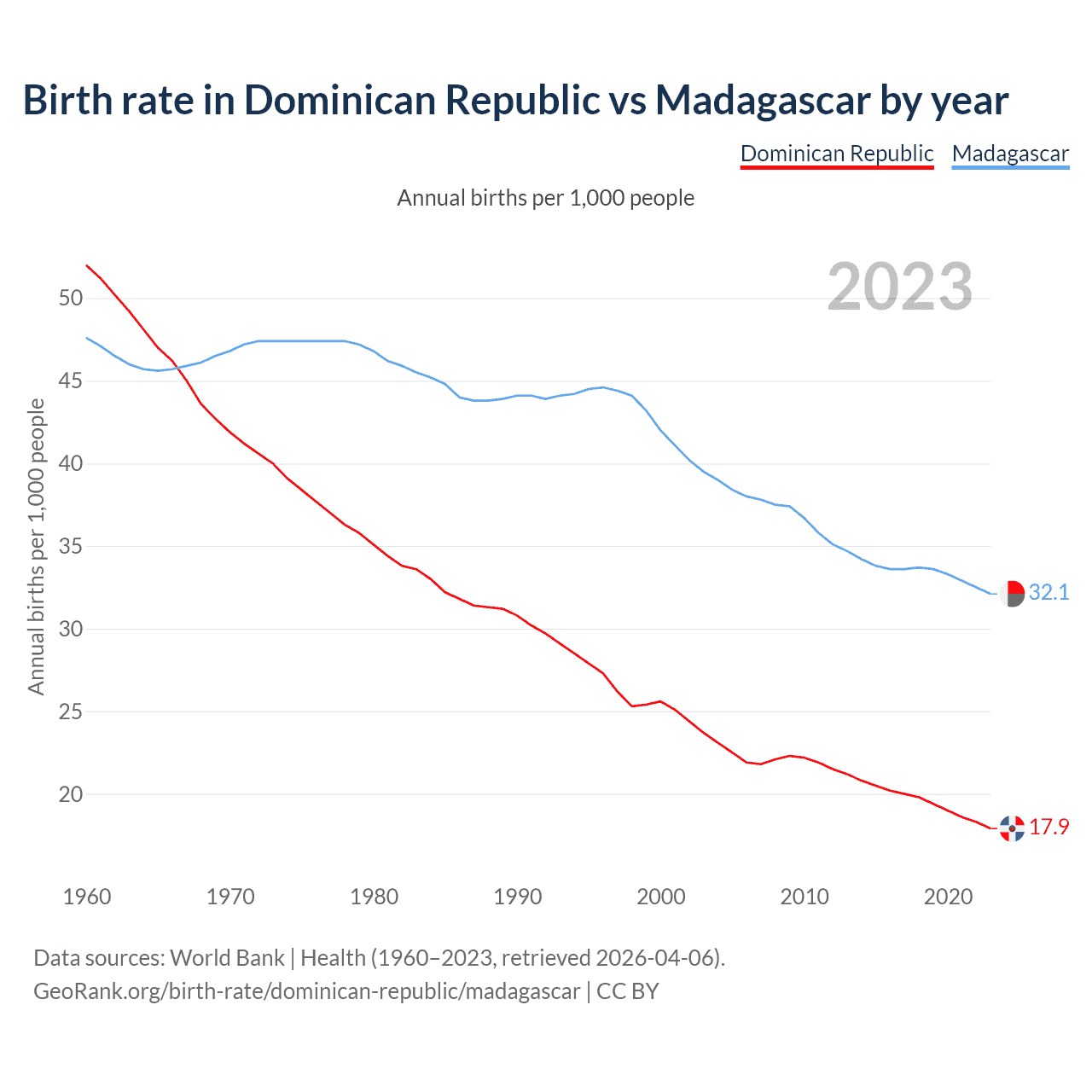 GeoRank.org/birth-rate/dominican-republic/madagascar | CC BY