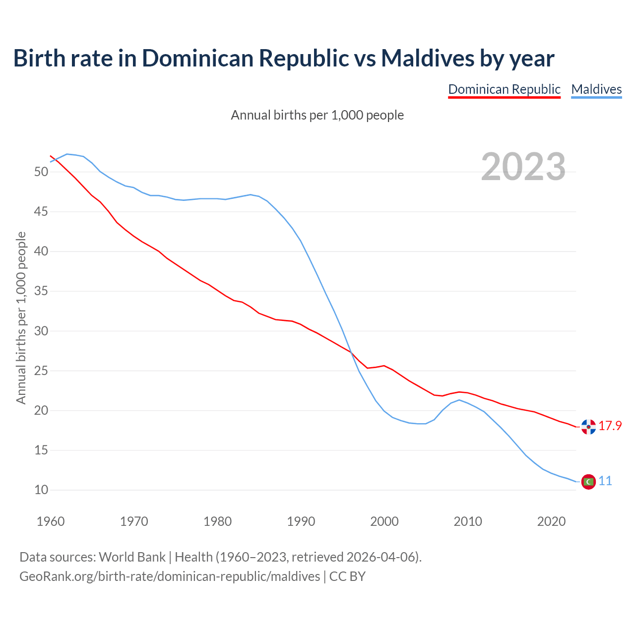 GeoRank.org/birth-rate/dominican-republic/maldives | CC BY