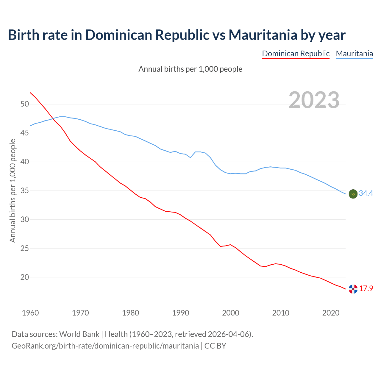 GeoRank.org/birth-rate/dominican-republic/mauritania | CC BY