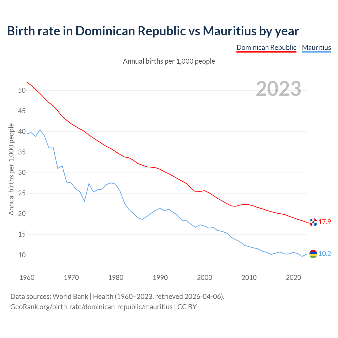 GeoRank.org/birth-rate/dominican-republic/mauritius | CC BY