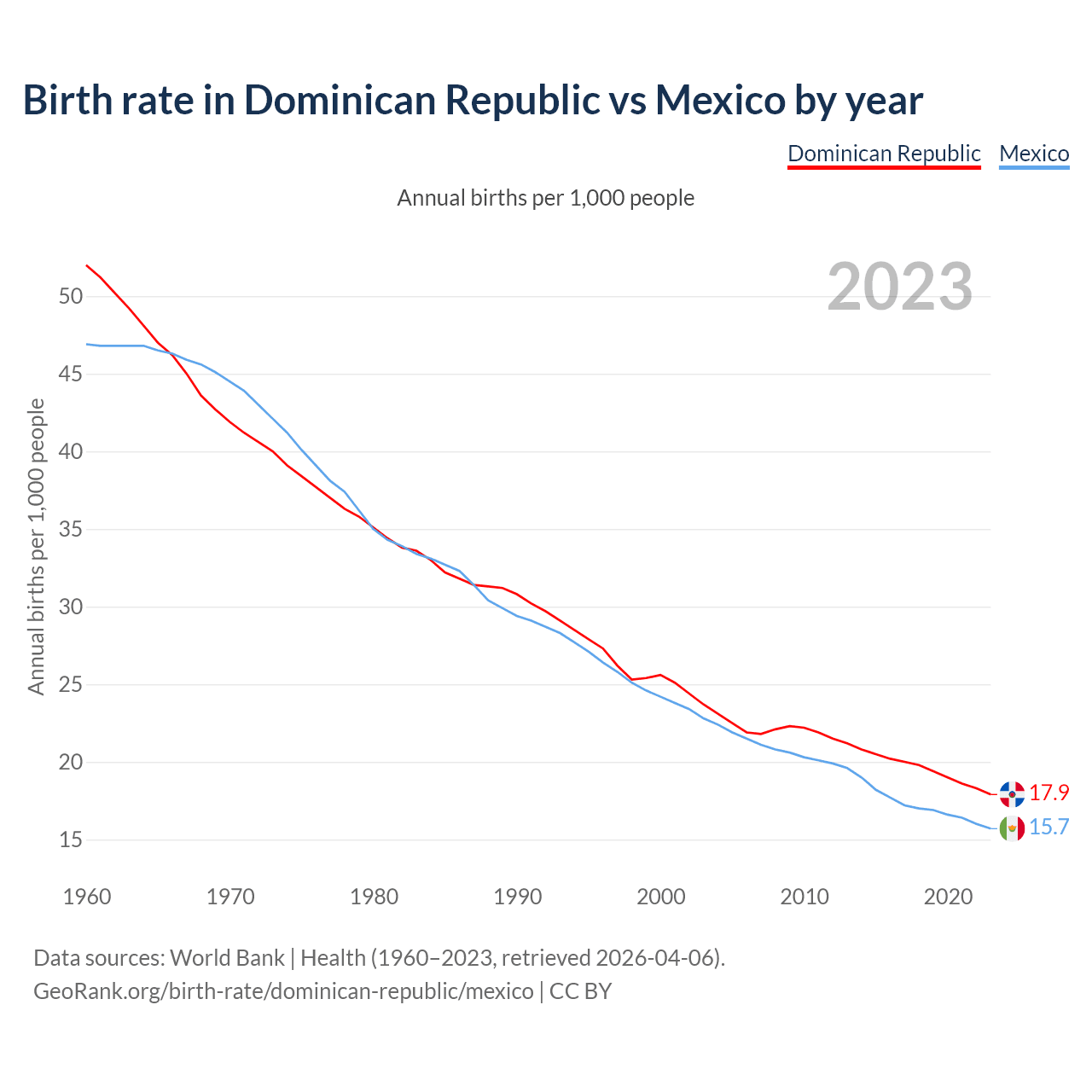 GeoRank.org/birth-rate/dominican-republic/mexico | CC BY