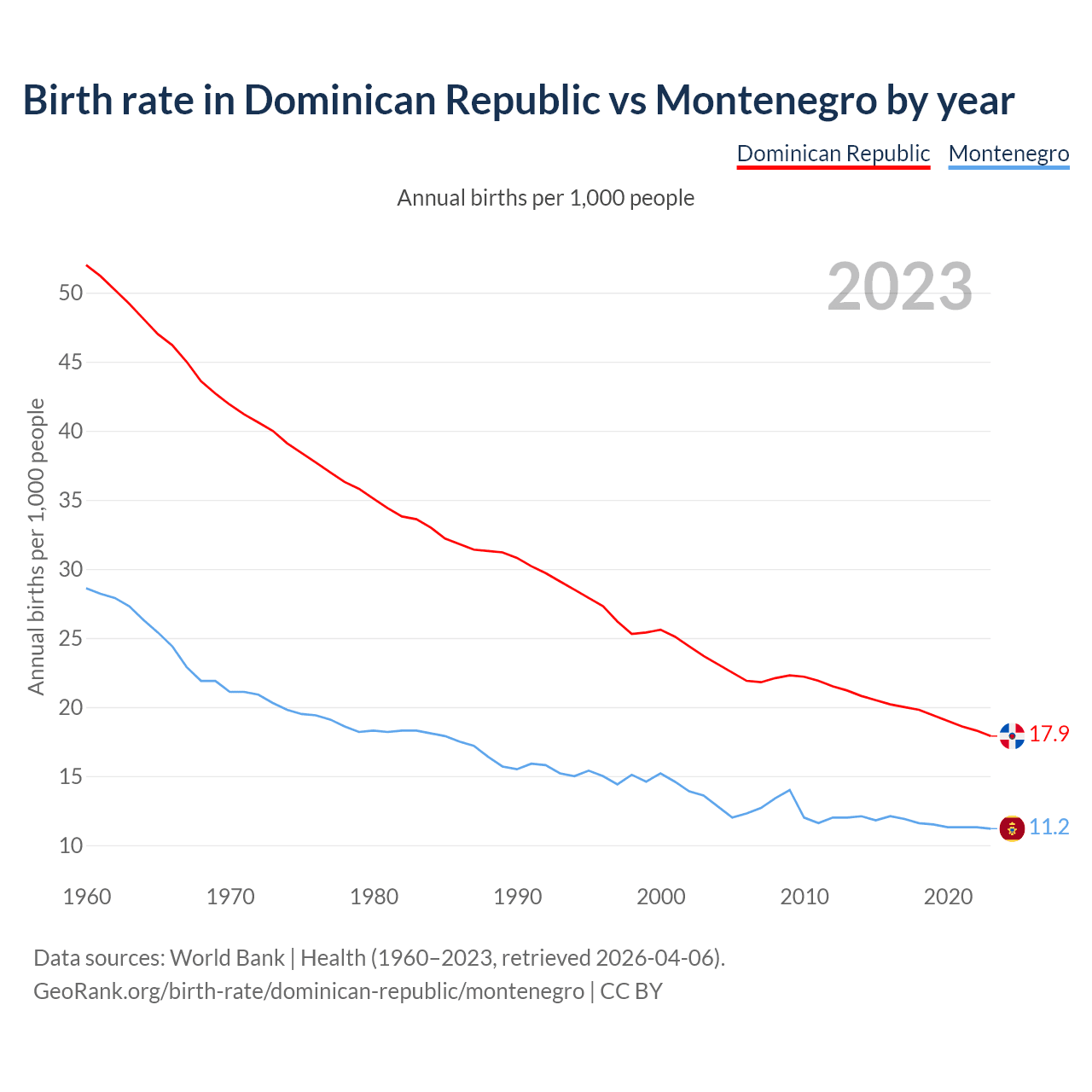 GeoRank.org/birth-rate/dominican-republic/montenegro | CC BY