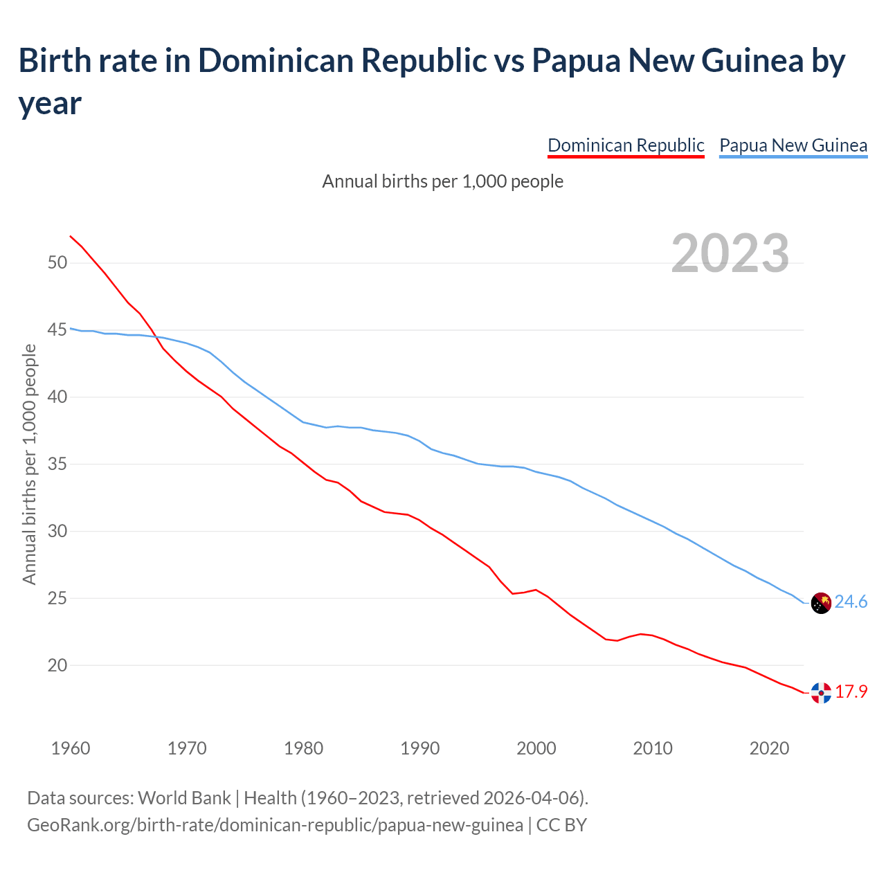 GeoRank.org/birth-rate/dominican-republic/papua-new-guinea | CC BY