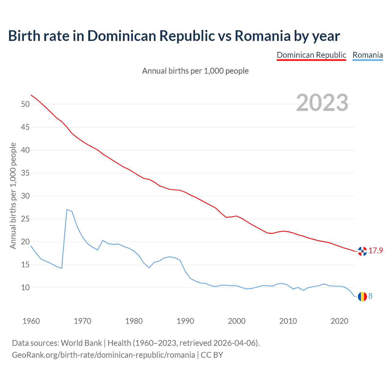 GeoRank.org/birth-rate/dominican-republic/romania | CC BY