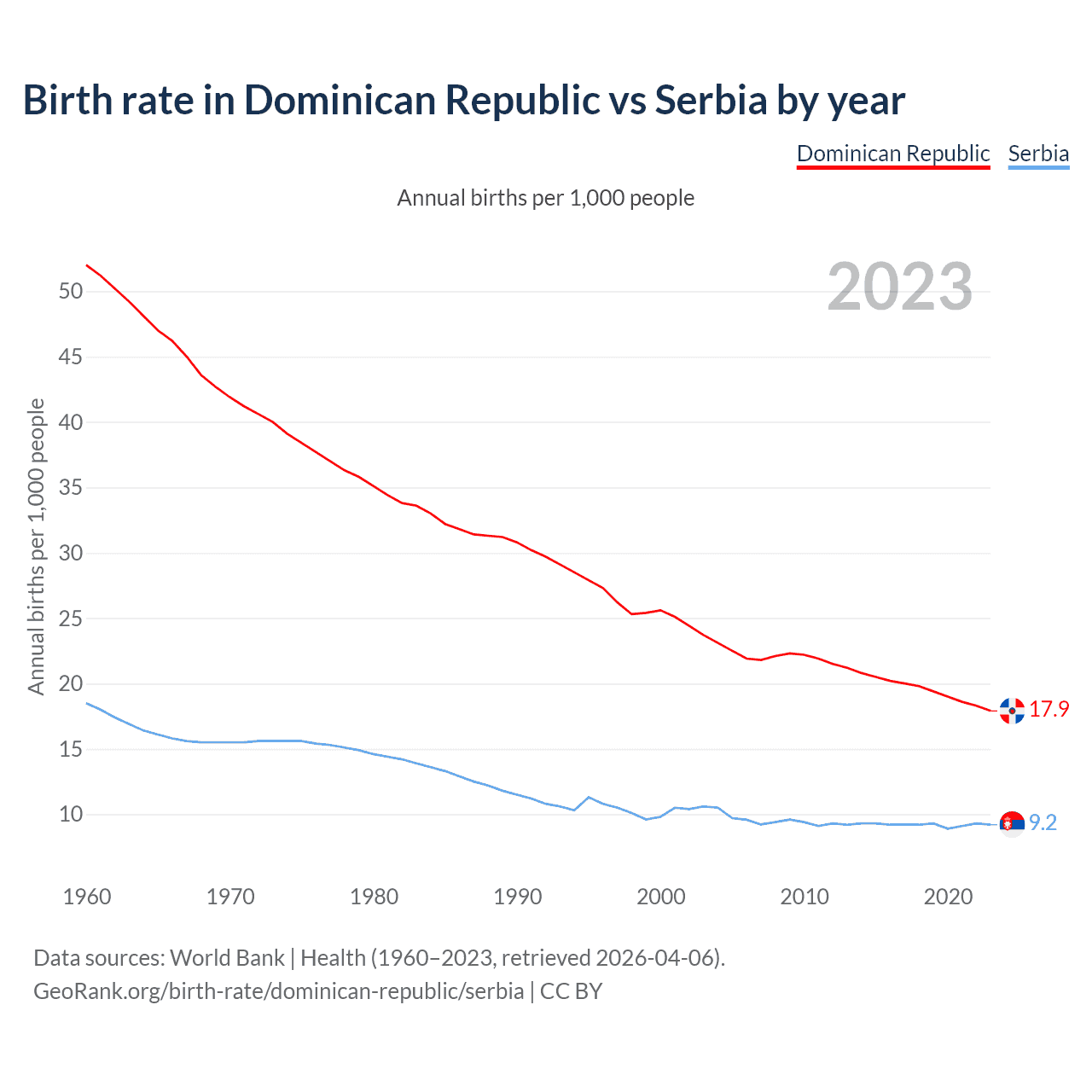 GeoRank.org/birth-rate/dominican-republic/serbia | CC BY