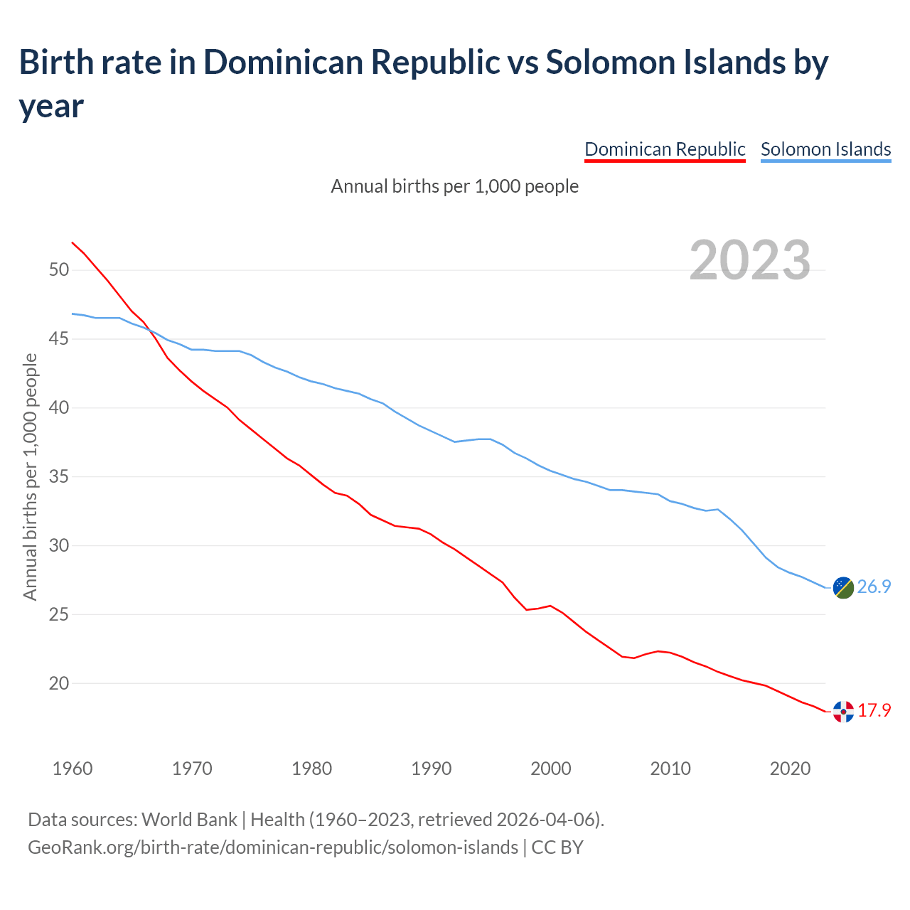 GeoRank.org/birth-rate/dominican-republic/solomon-islands | CC BY