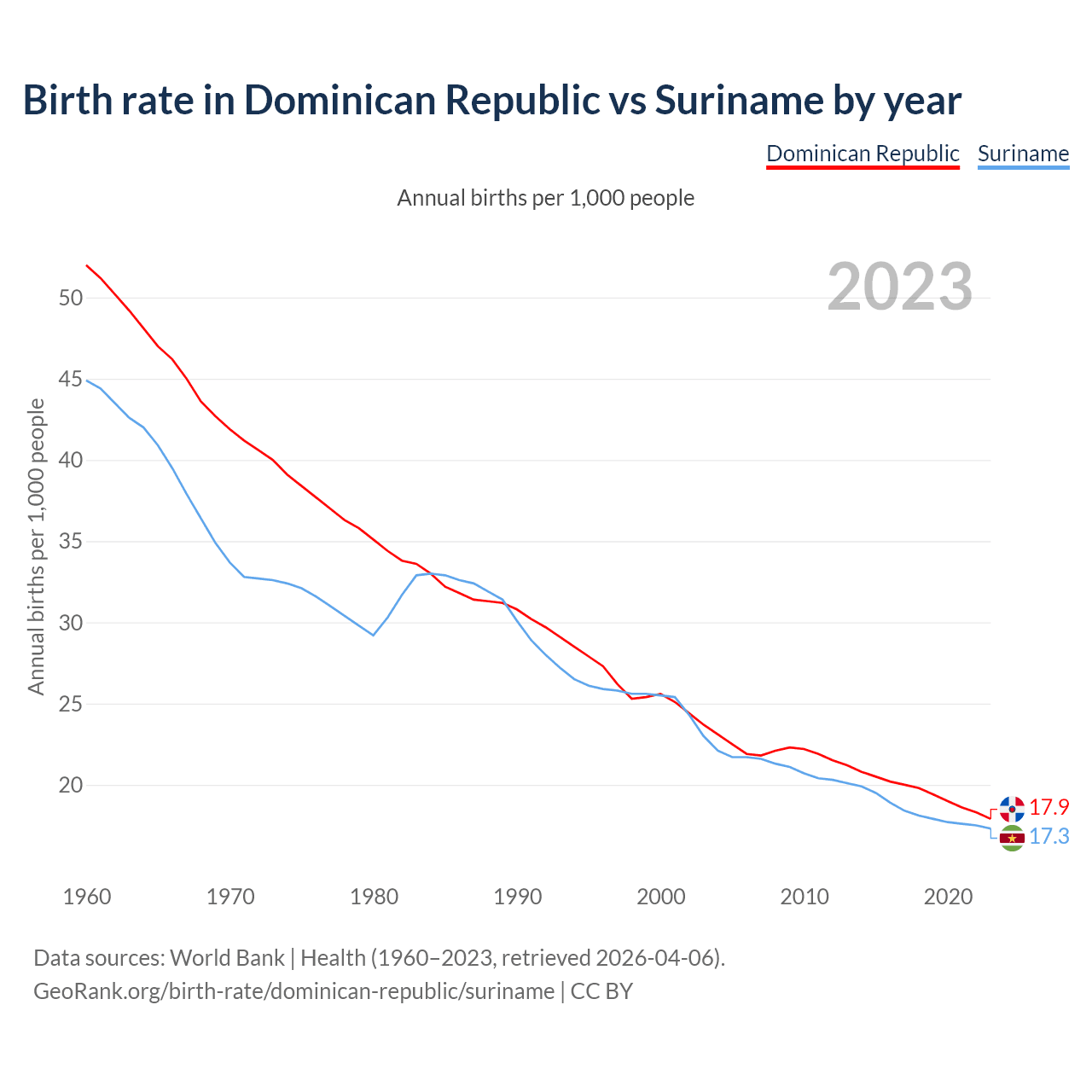 GeoRank.org/birth-rate/dominican-republic/suriname | CC BY